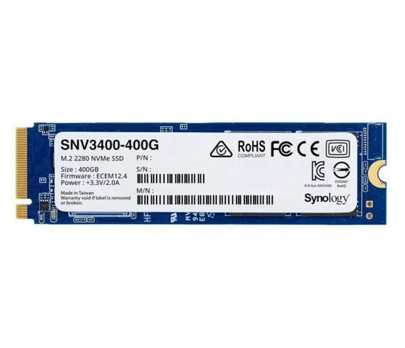 - Disque dur SSD d'une capacité 400GB utilisant une interface NVMe. Un disque de classe entreprise M.2 2280 SNV3400-400G dédié aux serveurs de marque Synology