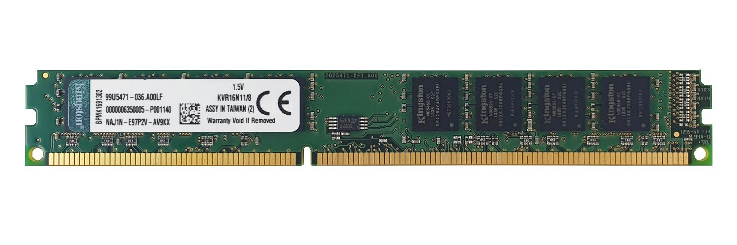 - Kit de mémoire RAM 8 GB composé de 1x 8GB PC3-12800 DDR3 1600MHz NON-ECC UNBUFFERED | KVR16N11/8