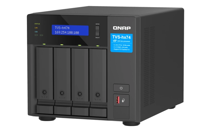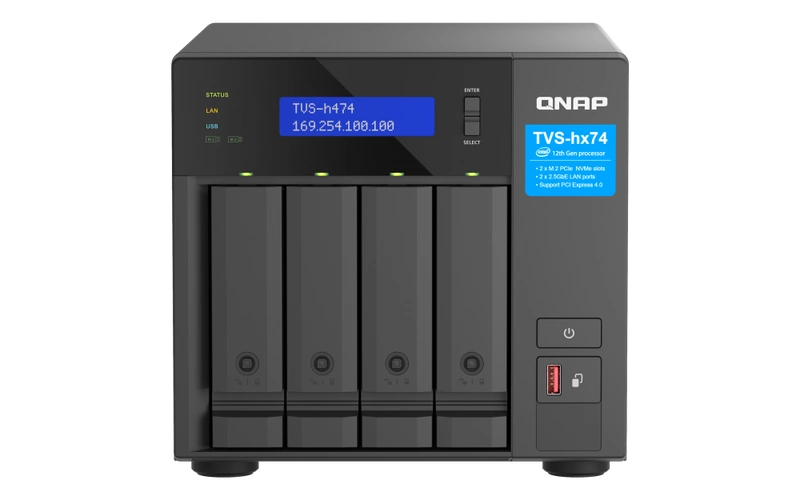 - Serveur NAS QNAP TVS-h474-PT | CPU: Intel Pentium Gold G7400 RAM: 8GB | 2x 2.5GB RJ-45, 2x USB 3.2 Gen 2 | Garantie 3 années